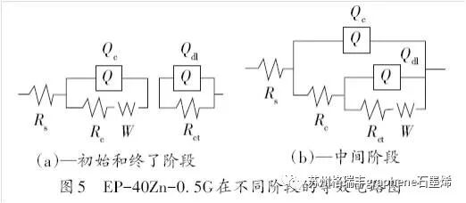 由于不含石墨烯涂层EP-40Zn和EP-70Zn的物理阻隔能力较弱,涂层内部的腐蚀介质短时间内就达到饱和状态,腐蚀产物的提升作用更显著,因此240h对应的低频阻抗模量略有提升。